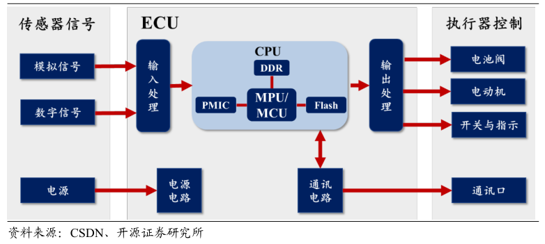 在目前大部分传统汽车采用的分布式E/E(电子电气)架构中,ECU在汽车发动机、变速箱、安全气囊等各底层执行零部件中广泛应用,承担决策功能。而在这样的架构下,要实现智能化功能的升级,就需要增加ECU的数量。