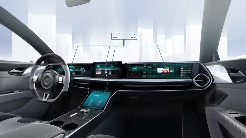 基于此,传统的功能芯片将不再适用,必须选择集成了中央处理器(CPU)、AI处理单元、图像处理单元(GPU)、深度学习加速单元(NPU)等多个模块的系统级SoC芯片。随着各个主机厂越来越倾向于采用硬件预埋的方式进行智能化竞赛,采用单个更高算力SoC芯片或多个SoC芯片成为主流趋势。博世智能座舱域控制器技术,就将仪表和娱乐域多个ECU集成在一个SoC(片上系统)上。
