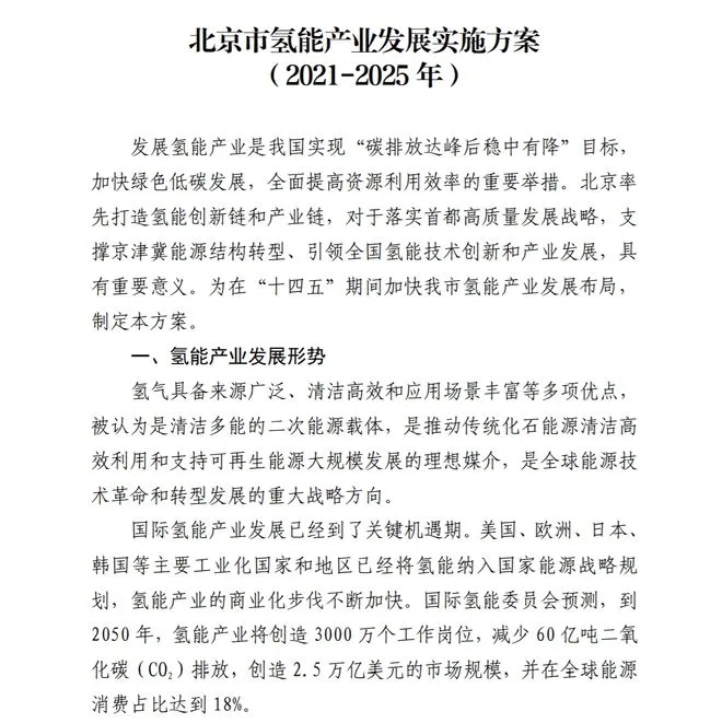 【北京发布氢能产业发展实施方案2023年目标3000辆】