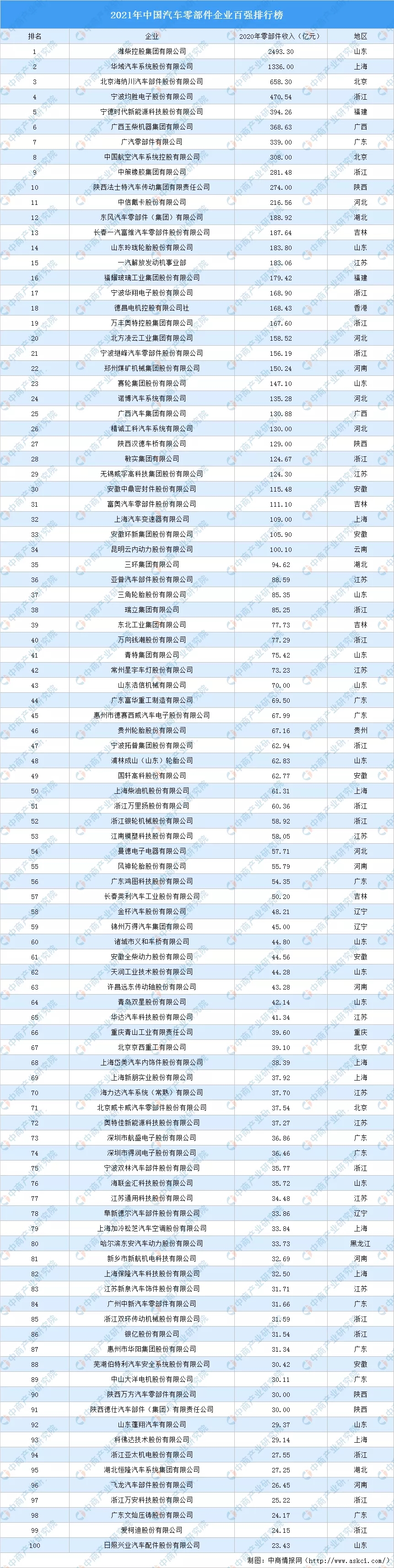 【2021年中国汽车零部件企业百强排行榜(附完整榜单)】