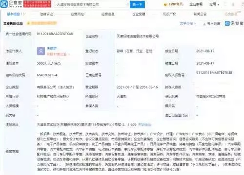 天津好嗨油信息技术有限公司成立,注册资本5000万元人民币,该公司由途虎养车网关联公司上海阑途信息技术有限公司100%控股。企查查APP显示,8月17日,天津好嗨油信息技术有限公司成立,法定代表人为朱鹤群,注册资本5000万元人民币,经营范围包含:网络技术服务;机械设备研发;成品油批发;成品油零售等。企查查股权穿透显示,该公司由途虎养车网关联公司上海阑途信息技术有限公司100%控股。