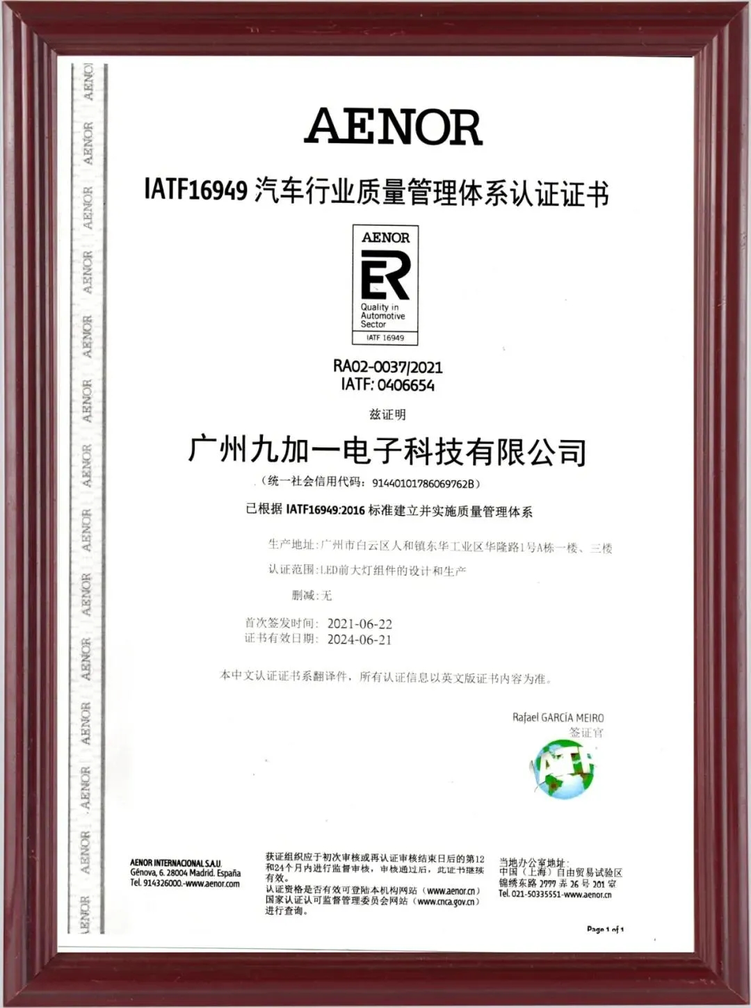 【热烈祝贺九加一顺利通过IATF16949和ISO9001两项重磅认证】