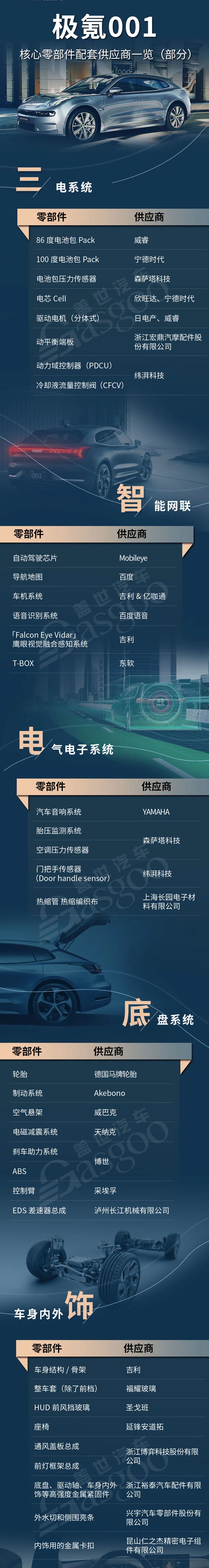 【多本土供应商“上位”,极氪001核心零部件配套供应商一览】