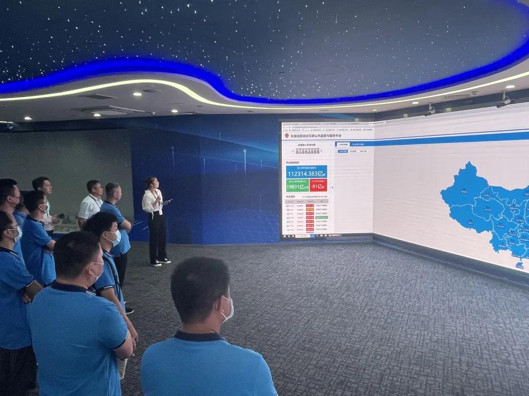 龚总一行在中交兴路展厅全方位了解了中交兴路在交通运输信息化、交通管理、智慧停车、民航服务、轨道交通、智慧安防等领域所取得的成果,并重点听取了“中交兴路全国货运平台”与“车旺大卡APP”的运营情况。