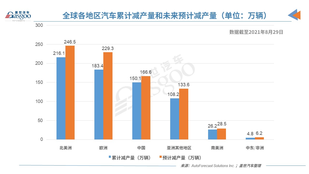 据外媒报道,上周,全球半导体芯片短缺继续冲击着汽车行业,根据AutoForecast Solutions(以下简称为AFS)的最新数据,截至8月29日,全球汽车累计减产量达688.7万辆,比前一周增加了44.5万辆。AFS指出,上周,中国的汽车生产计划遭受的冲击最大,一些工厂从其原本的生产计划中削减了31.5万辆汽车。