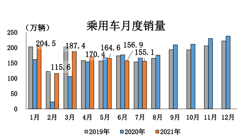 2021年1-7月乘用车月度销量(图片来源:乘联会)