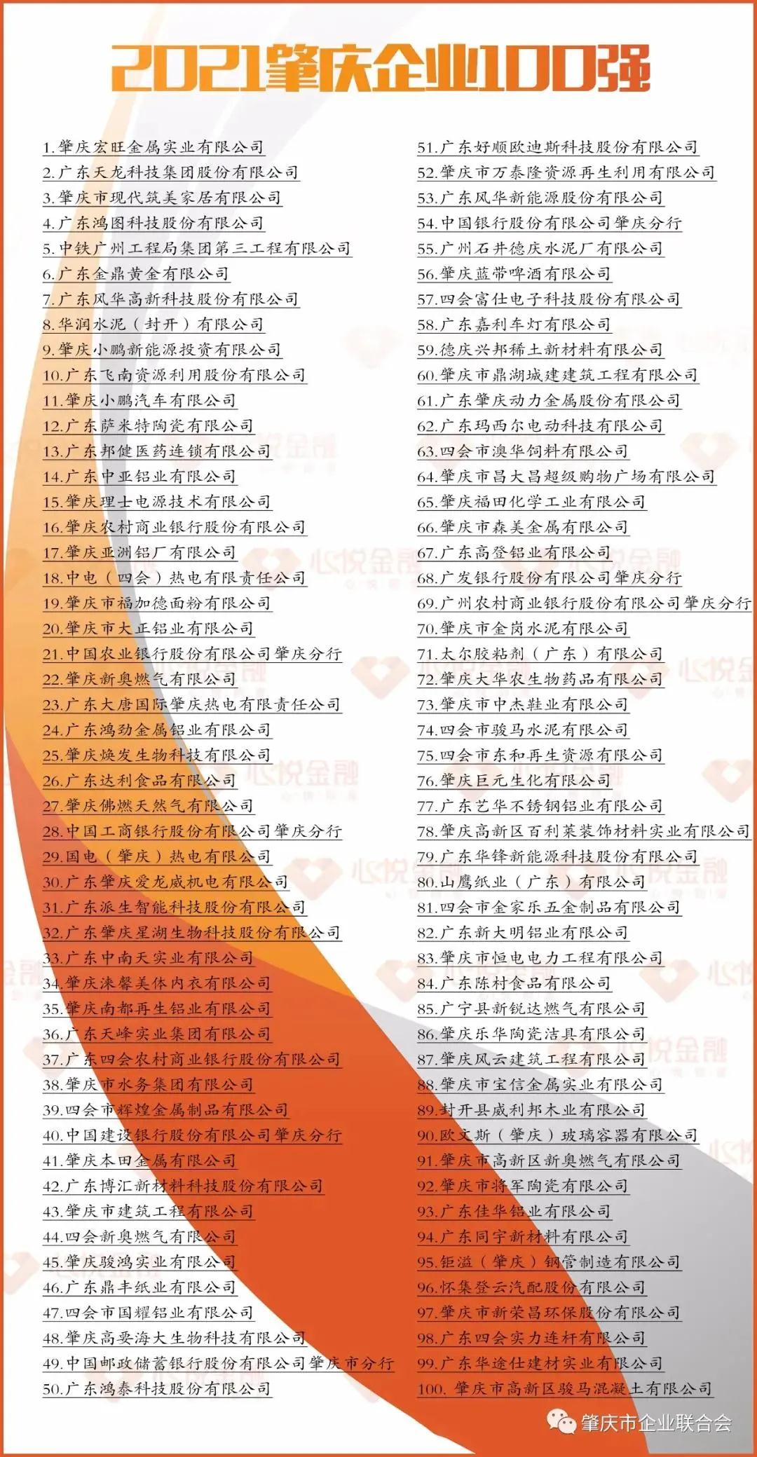 “2021肇庆企业100强”