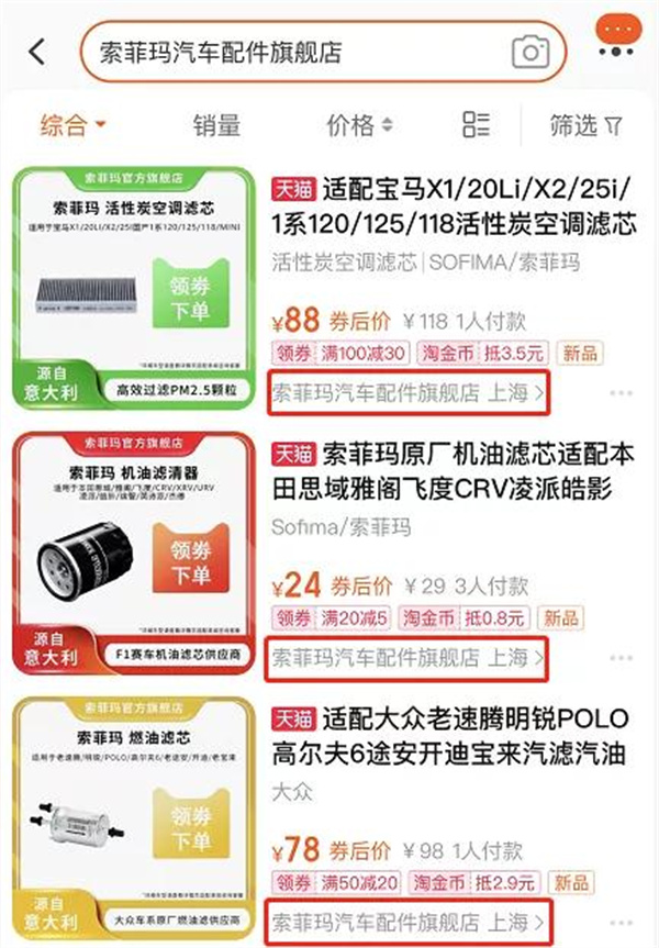 打开淘宝APP或者网站,输入“索菲玛汽车配件旗舰店”搜索即可找到店铺。
