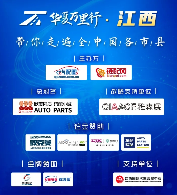 为了深入了解竞争激烈的中国汽车后市场,并与终端经销商进行零距离沟通,7月14日,“华夏万里行·江西站”发行活动正式启程,本次发行活动由汽配圈、链配网联合主办,三头六臂独家冠名,汽配圈和江西国际汽车会展中心共同组建3支专业小团队,并携手后市场各品类知名厂商——敦克曼滤清器、爱多雨刷、德尔科火花塞、车配驿站、九隆制动、辉波蕾点火线圈赞助支持。规划40天将走遍江西省各市县,进行无死角覆盖,将行业资源进行数据化整合,基础资源的“集结”,收集经销商资料,为上游企业渠道拓展提供数据支持。