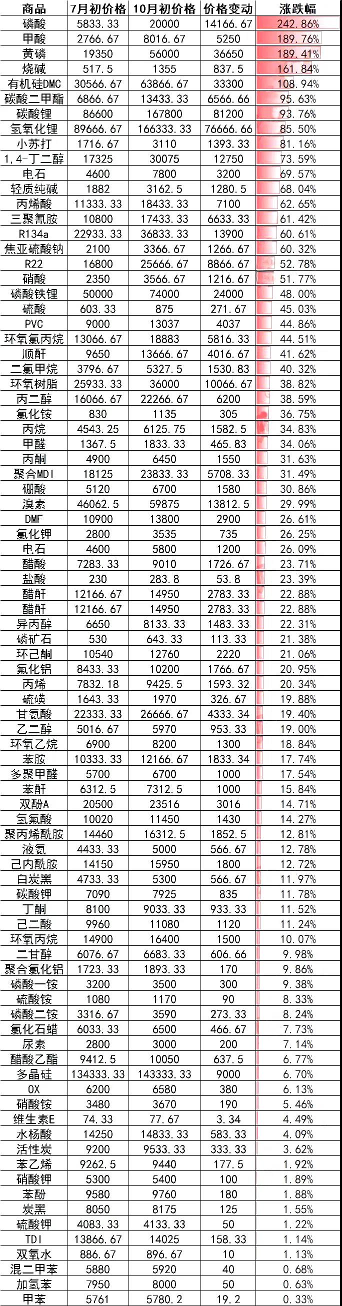10月伊始,巴斯夫、杜邦等近百家国际巨头宣涨,朗盛调涨6000元/吨