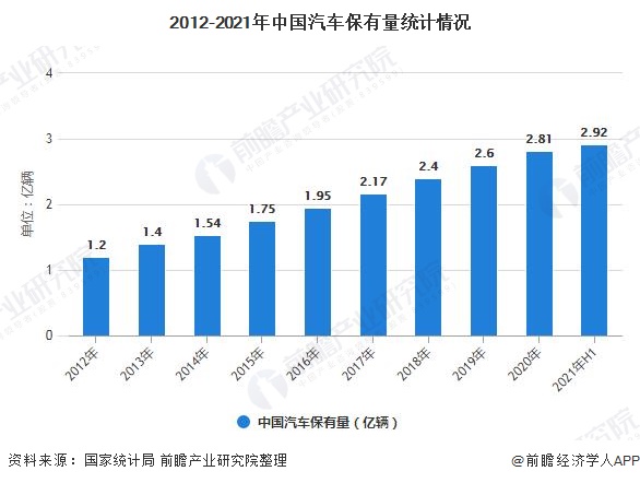 近年来,中国汽车产业快速发展,拉动了汽车零部件市场需求,当然不可避免地也给滤清器行业带来了商机。根据国家统计局统计数据,2012-2020年我国汽车保有量呈现连续增长趋势,截止2020年底,我国汽车保有量约为2.81亿辆,较2012年增长了1.61亿辆。截至2021年6月底,中国汽车保有量达到2.92亿辆。