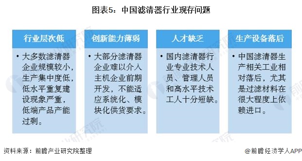 目前,国内滤清器行业市场的规模虽然很大,但是行业内竞争十分激烈,虽然民族品牌和自主品牌在售后市场上占有相对而言比较明显的优势,但是国内的滤清器高端市场却主要由外资和合资企业占领。国内滤清器厂家在产品的价格、品质的提高以及技术研发方面等缺乏明显的竞争优势。激烈的市场竞争、良莠不齐的企业、产品技术的匮乏等等,使得滤清器行业直至今日仍然没有形成垄断或近乎垄断的超大型企业。