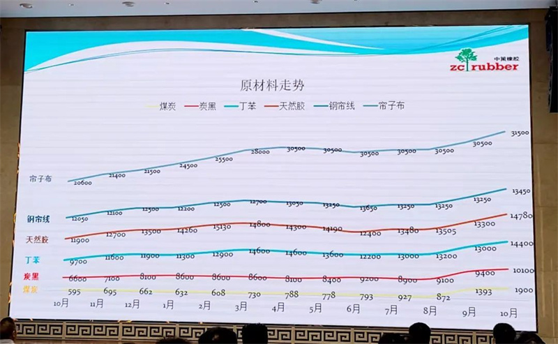 回顾去年四季度到目前的轮胎原材料价格走势,从下图中可以看出:今年一季度原材料出现第一波小幅上扬行情;二季度回归平稳;但三季度9月份以来开始大幅上涨,并且其上行趋势更加凸显严峻!