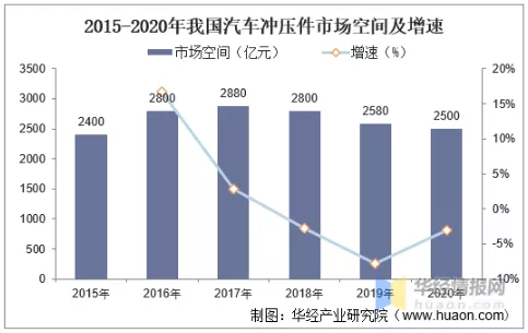 现代汽车制造工艺中有60%~70%的金属零部件需冲压加工成形,冲压件广泛应用于如车身上的各种覆盖件、车内支撑件、结构加强件,以及大量的汽车零部件如发动机的排气和进油弯管及消声器、空心凸轮轴、油底壳、发动机支架、整车框架结构件、横纵梁等。平均每辆车上包含1500余个冲压件,单车配套价值超1万元,以2020年汽车产量2522万辆来计算,预计我国2020年汽车冲压件市场空间超过2500亿元。