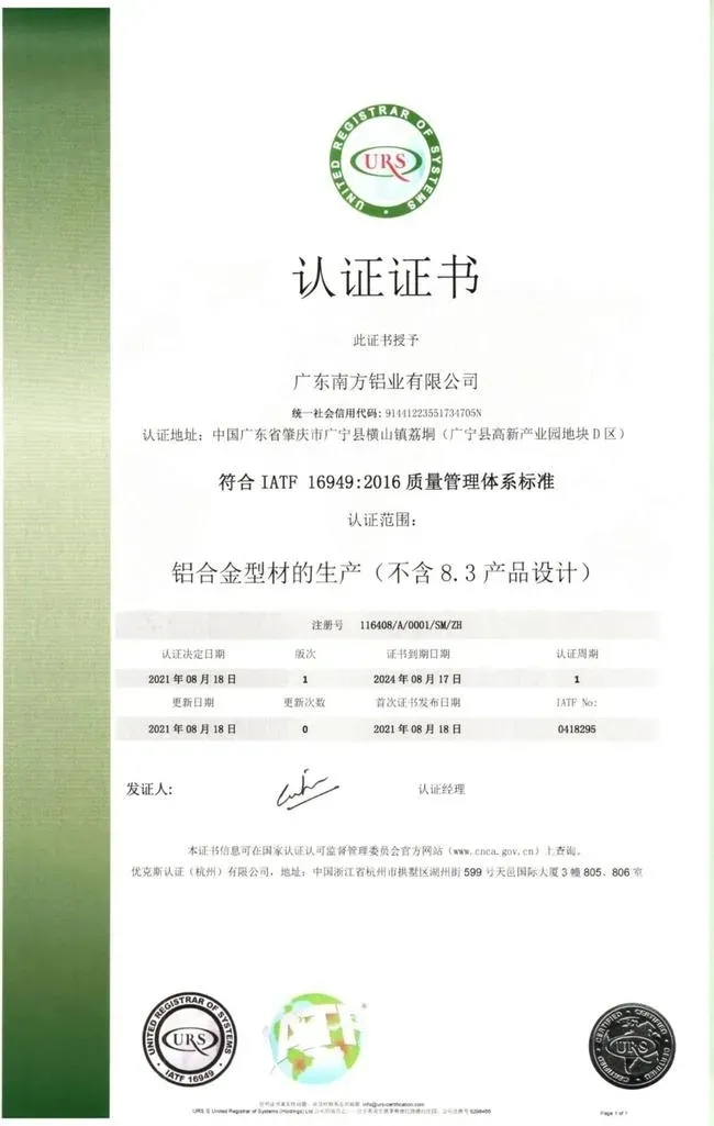 近期,南方铝业顺利通过IATF16949:2016国际汽车质量认证管理系统认证并取得证书,这标志着南方铝业得到了国际标准化组织的认可,获得了一张全球流通的“通行证”。该认证是一般汽车零部件制造供应企业进入主流整车厂零部件供应链质量管理体系的一个准入门槛。