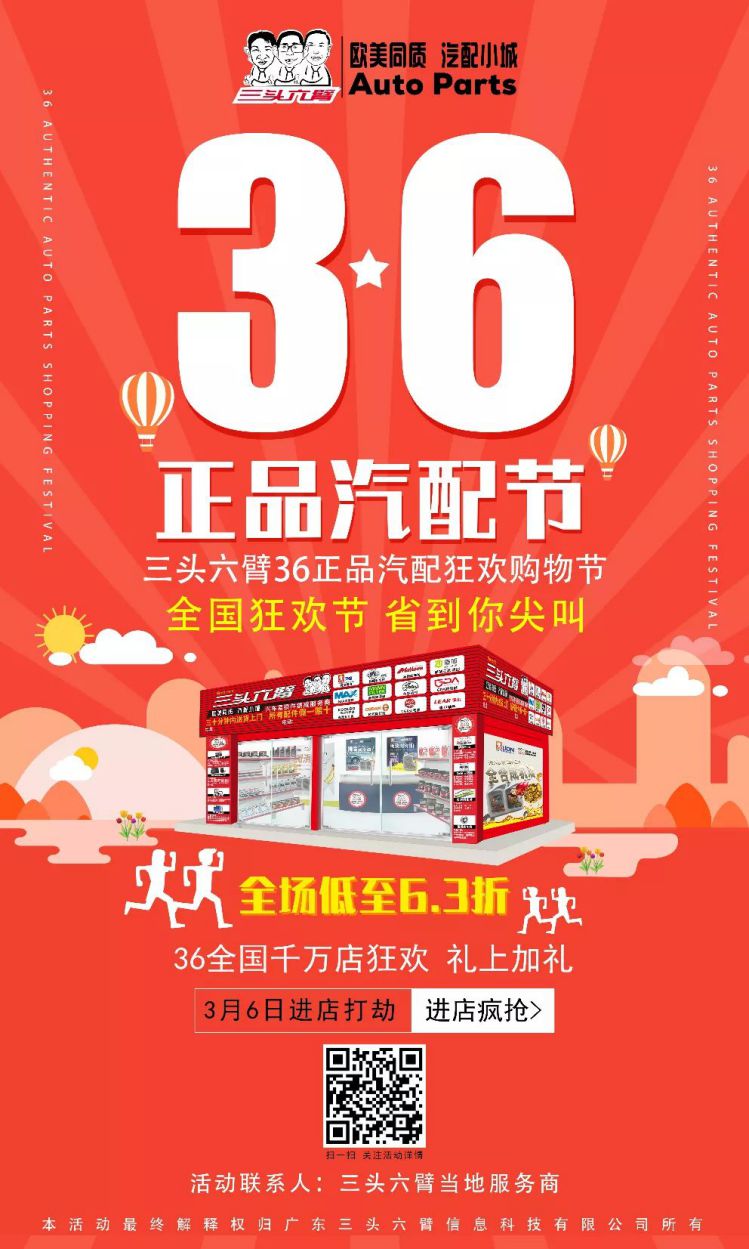 首届的“36正品汽配购物节”由三头六臂牵头,无论从服务的区域,还是维修厂数量都将空前庞大,旨在打造出一个能让所有“汽配人”狂欢的节日!3月6日这一天必将成为汽配行业的年度盛典!