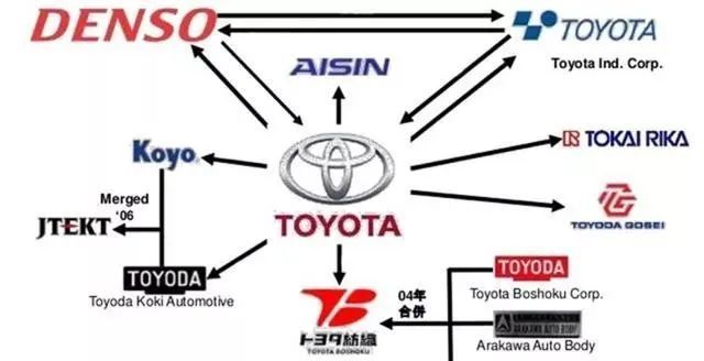 汽车主机厂与供应商的关系还可以是交叉持股。这种错综复杂的关系在丰田与电装公司之间展现的淋漓尽致。电装公司以前是丰田汽车的一个部门。在1949年,电装公司独立出去,开始了野蛮生长。电装公司从最开始只负责丰田汽车的业务,慢慢的发展到向全球主机厂提供产品。