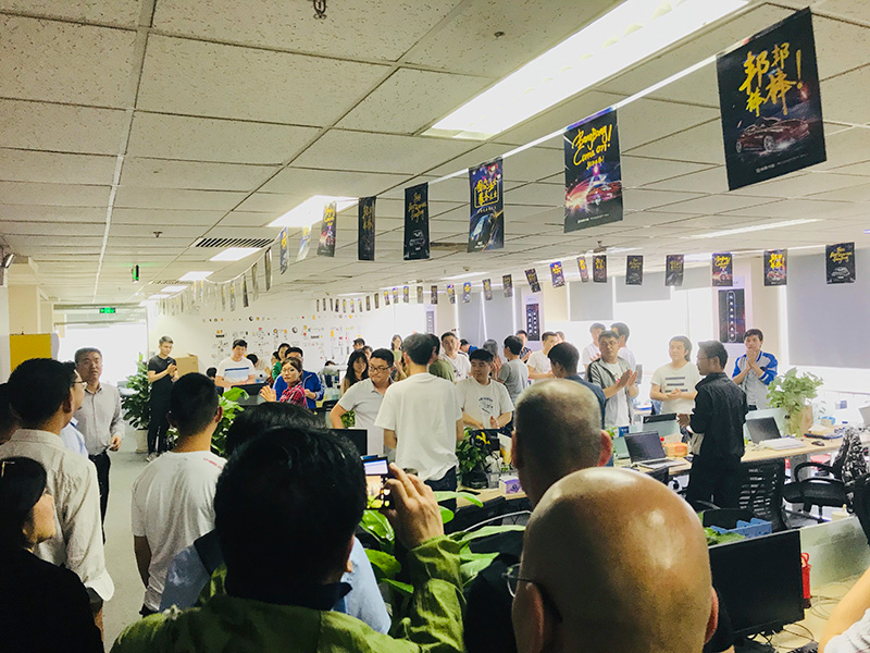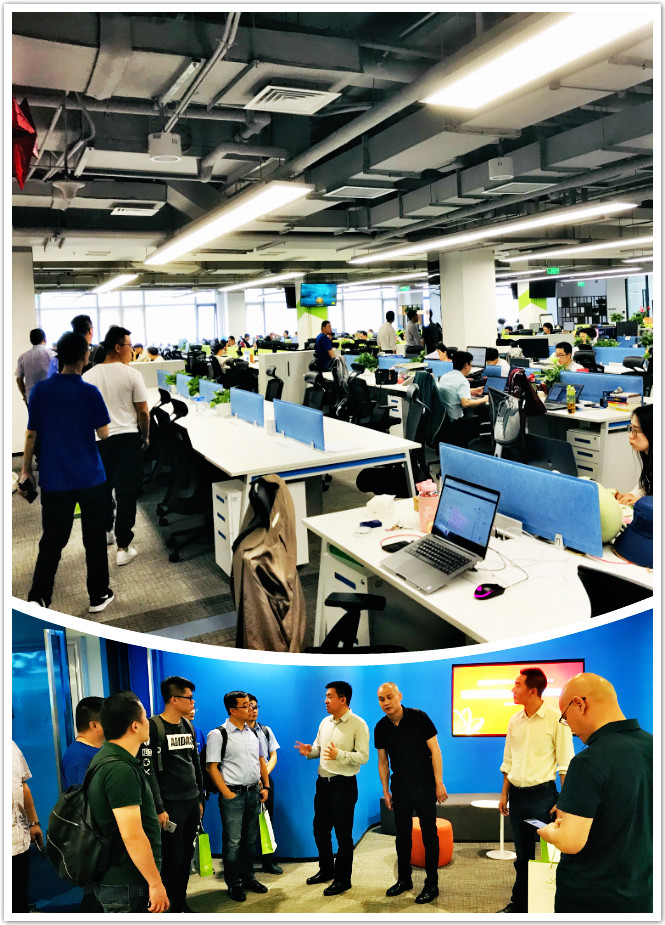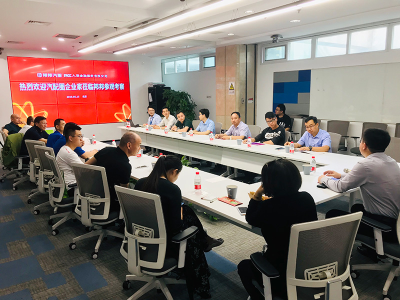 参观邦邦汽服国贸职场,全体员工起立欢迎考察团成员们