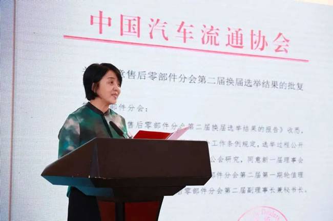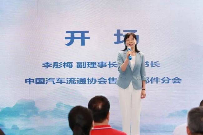 中国汽车流通协会售后零部件分会副理事长兼秘书长李彤梅开场。首先她代表分会向参会企业表示热烈欢迎,对中国汽车流通协会副秘书长郎学红的到来以及对于本次会议所作出的会议报告表示诚挚的感谢。开场中,李秘书长对于分会六年来的工作进行了总结汇报,并表达了对本次会议的希冀。