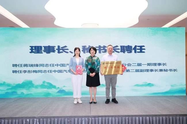 中国汽车流通协会副秘书长郎学红女士宣读协会批复,颁发新一届理事长、秘书长聘书。