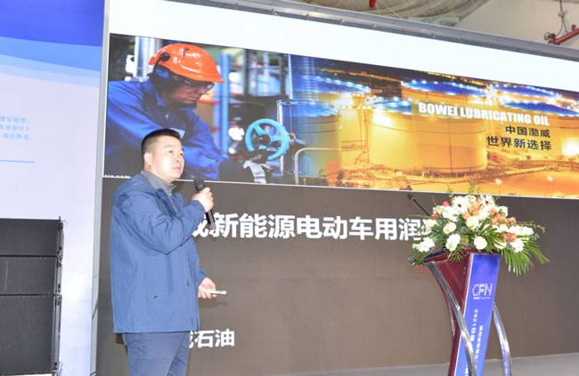 在会议最后,我会常务副会长单位浙江渤威能源科技有限公司工程师管栋上台介绍了公司的基本情况与汽车零部件制造专用油,通过分享让参会人员更加了解新能源汽车中专用油的运用。