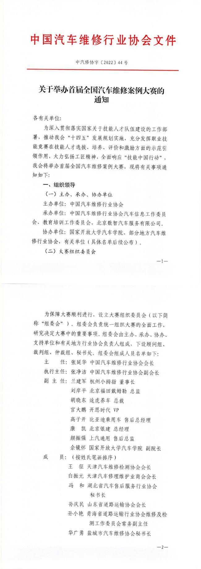 为深入贯彻落实国家关于技能人才队伍建设的工作部署,推动我会“十四五”发展规划实施,充分发挥职业技能竞赛在技能人才选拔、培养、评价和激励方面的示范引领作用,大力弘扬工匠精神,全面响应“技能中国行动”,我会将举办首届全国汽车维修案例大赛,现将有关事项通知如下: