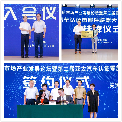 论坛期间,还举办了亚太汽车认证零部件联盟正式加入中国消费品质量促进会汽车工作委员会仪式,锡山经开区管委会与中汽研检测认证事业部天津华诚认证有限公司的合作签约仪式,亚太汽车认证零部件联盟天津推广运营中心挂牌仪式等活动。
