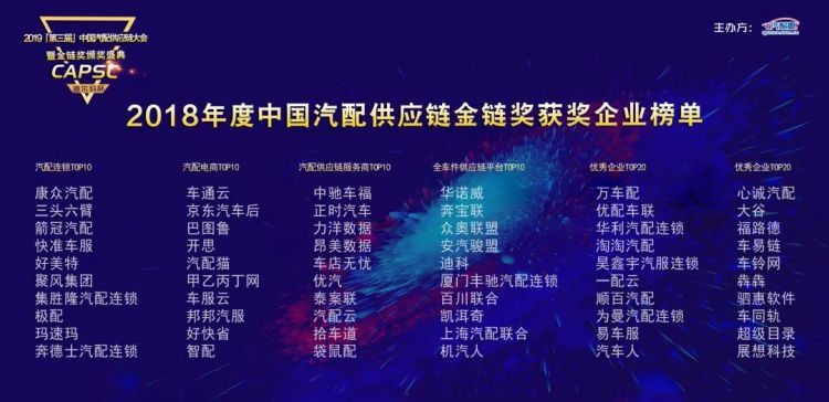 TOP502019中国汽车后市场最具竞争力供应链服务商