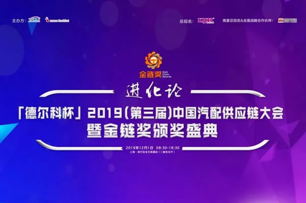 2019年12月1日,由汽配圈、法兰克福共同主办、德尔科独家冠名的德尔科杯·2019(第三届)中国汽配供应链大会暨金链奖颁奖盛典即将在上海盛大举行。本次会议以“进化论”为主题,届时,各大供应链平台也会悉数莅临盛会现场,真正搭建一个互通有无、交流促进的平台和机会。同时,德尔科杯·2019年度中国汽配供应链金链奖颁奖盛典也将在大会现场揭开获奖企业的神秘面纱。
