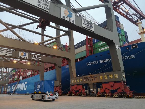 中远海运港口厦门远海码头无人驾驶集卡作业演示
