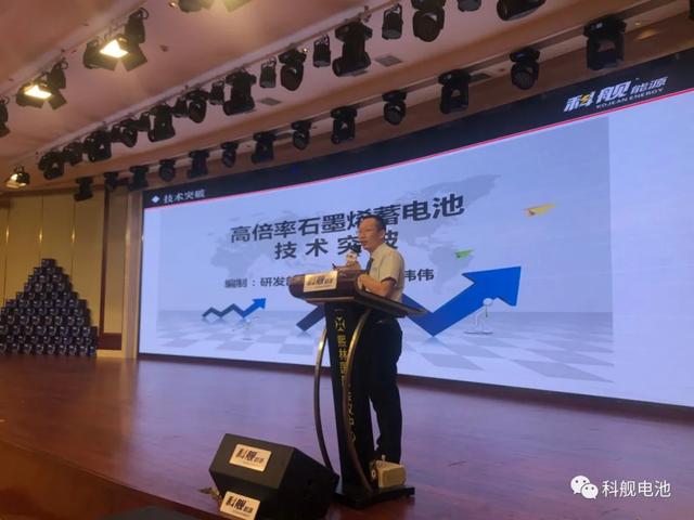 科舰能源研发部项目负责人李伟伟对当前公司的高倍率石墨烯电池的技术突破核心技术创新及应用实际案例在会场上进行讲解,2019年与欧洲recor公司进行合作开发,也预示着公司的技术研发迈入新时期。