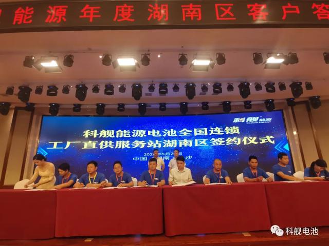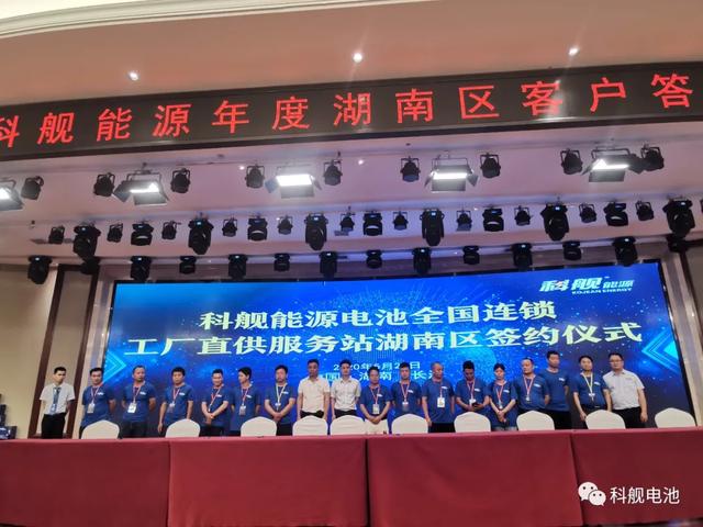 科舰能源电池全国连锁工厂直供服务站的发布,让会议现场进入高潮,湖南区各合作伙伴争先签约全国连锁工厂直供服务站,现场异常火爆。公司现场免费赠送首批服务形象车。
