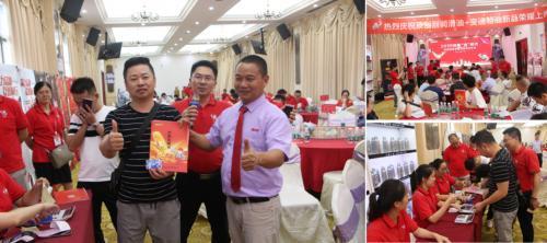 在发布会上,顶刮刮营销中心总监周少敏先生为合作伙伴及经销商详细阐述了顶刮刮连锁加盟平台的巨大优势,特别是对加盟商的各种支持政策,带领大家对顶刮刮有更深一层的认识。为了帮助经销商、合作伙伴在今年的特殊时期能够更好的进行产品运营,现场还进行新品市场营销战略分享。相信凭借顶刮刮强大的品牌力量和渠道支持,成熟的、全新的终端运营战略,以及强大而富有战斗力的销售团队进行协销,完全可以在国内领先升级油品,做到变速箱油、发动机润滑油专业中的专业。