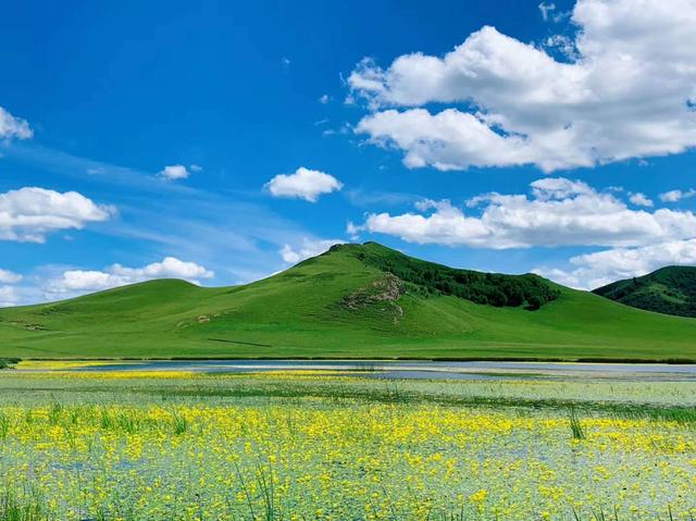 “天似穹庐,笼盖四野”,每年的五月下旬到八月,是乌兰布统最美的季节,这里温度适宜,景色多姿,特别是影视基地一带的“百花草甸”,让夏季的草原色彩斑斓,一片生机。