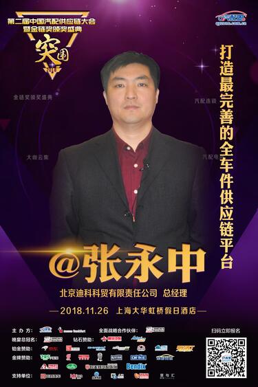 届时,北京迪科科贸有限责任公司总经理——张永中先生会在圆桌对话环节中为我们分享:如何打造最完善的全车件供应链平台。敬请期待!