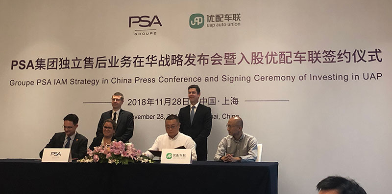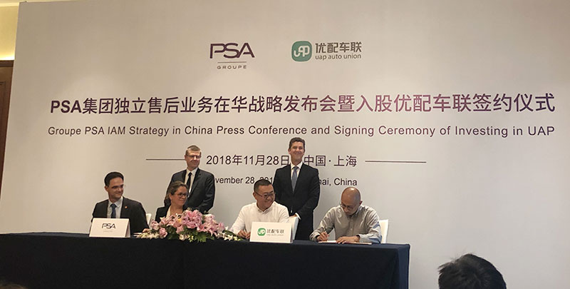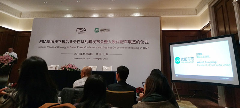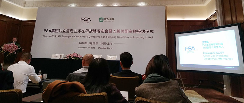 2018年11月28日,PSA集团独立售后业务在华战略发布会暨入股优配车联签约仪式,在上海法兰克福展览会期间正式举行。