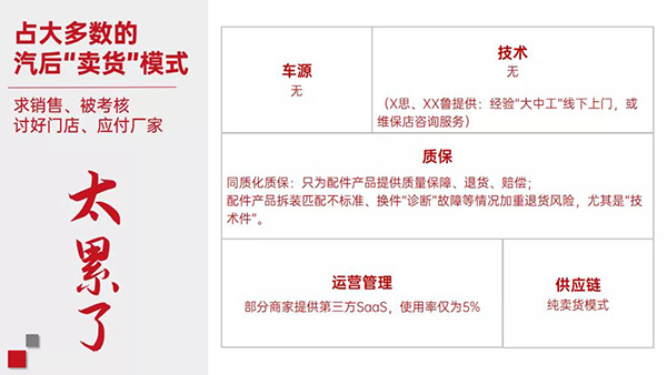 小虎汽车CEO兼创始人冯纪方先生,对汽后供应链“纯卖货”模式展开深度解读,一针见血地指出汽后供应链“纯卖货”模式带来惨烈的同质化竞争,学习主机厂~4S店的供应链服务模式已成为大势所趋。