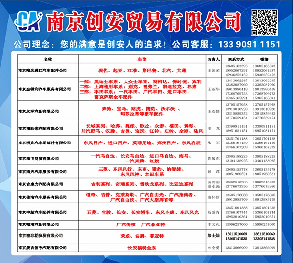 说到这里,就不得不提一下作为汽车后市场近年来在提供报价直供、验货、配件直供等服务方面取得突出成绩的企业——南京创安贸易有限公司。