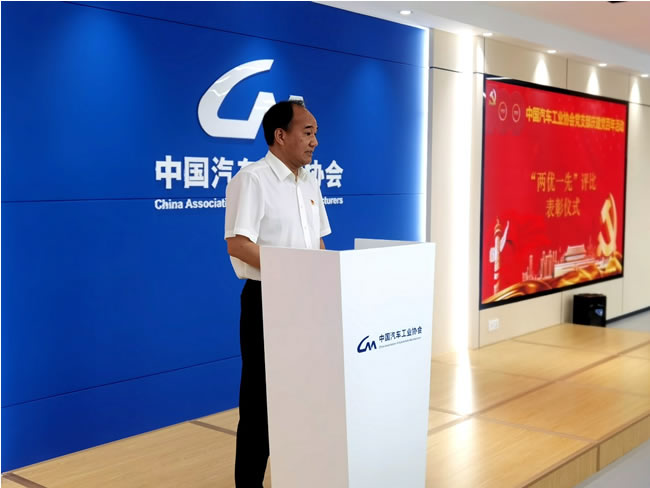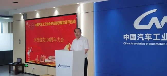 在收看直播之后进行的庆祝建党百年大会上,中国汽车工业协会党支部书记、常务副会长兼秘书长付炳锋做了发言。付炳锋表示,新时代、新形势、新任务,要求我们党要与时俱进,始终走在时代的前列。党的建设使命光荣,任重道远,需要各级党组织和每名党员认清责任,奋勇争先,做出不懈的努力和奋斗。协会作为连接政府和企业的桥梁,在过去一年多,协会党支部认真学习贯彻党的十九届二中、三中、四中、五中全会精神,紧密结合行业和协会工作,以服务行业为目标,主动作为,迎难而上,充分发挥行业组织的积极作用,为行业发展做出了较大贡献,也为行业的平稳健康发展,提供了重要的思想政治指导和组织保证。