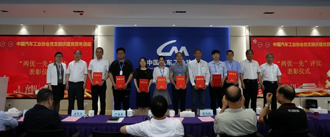 中国汽车工业协会党支部组织委员、总工程师、副秘书长叶盛基按照上级党委的指示和要求,宣读了中机联党委文件《关于表彰先进基层党组织优秀共产党员和优秀党务工作者的决定》,协会李桂新同志和李虹同志为优秀党员,陈士华同志为优秀党务工作者;宣读了协会“两优一先”表彰决定文件。协会党支部书记和党支部委员分别为协会优秀党小组长和先进党小组、优秀党员颁发了证书。