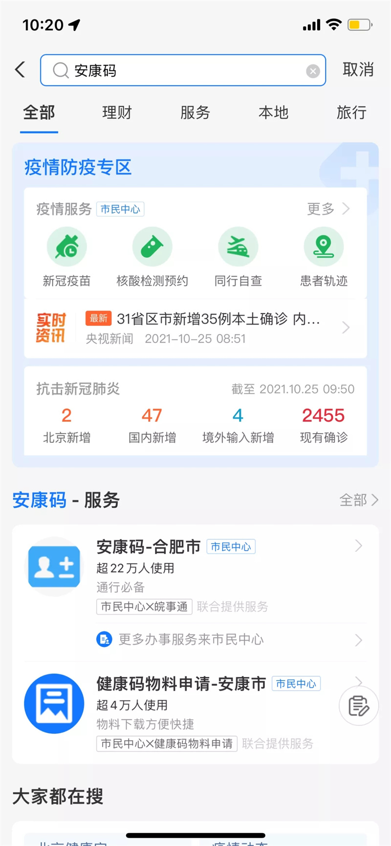1、在支付宝中搜索安康码,注册即可