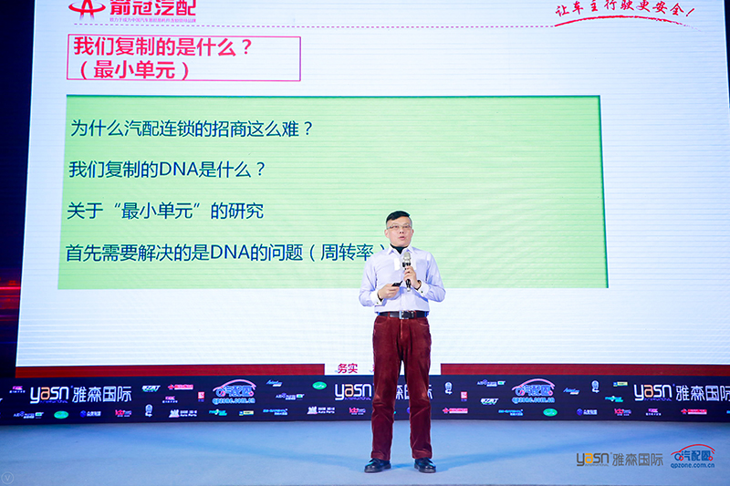 监管首先是一个很有责任感的企业,我在这个行业做了16年的研究,多半的时间是放在修理厂的解决方案,因此,在很多年前我就提出,要想把零售服务的终端做好,第一必须解决人力资源的持续供应,第二必须解决配件的持续供应问题,如果能解决好这两个问题,终端连锁才能够无限制的扩张。在没有解决好这两个问题之前,我们想开1000、5000、1个万可能够呛。之前一方面我在研究零售服务终端的同时,我开始深入研究人如何实现专业化,这次受到张总的邀请,我能够有机会研究配件,因为作为终端连锁两大支柱,一是人才,二是配件,那么,配件是如何能够更好的供应?在这个过程当中,我找到了很多答案,当然,也正因为我们了解一个修理厂,一个零售服务机构是如何需要配件,可能作为一个配件的供应商才能够做好如何有效的供应配件,在这里,我找到一个更好的平台。