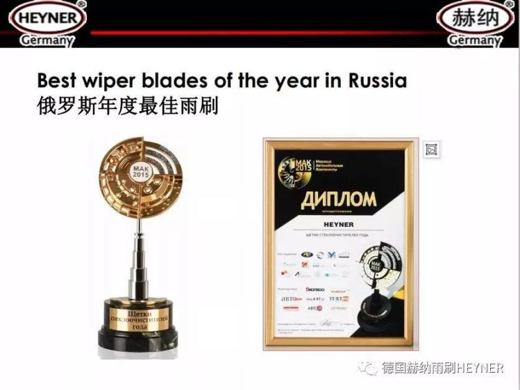 德国赫纳雨刷享誉全球,畅销于西欧、东欧、俄罗斯、中亚、东南亚、北美 、南美等100多个国家和地区,并且加入WIPO世界知识产权组织。