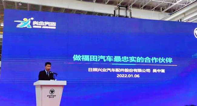 1月6号,以“战略引领 融入潇湘 合作共赢”为主题的北汽福田欧航欧马可事业部供应链招商大会在长沙福田超级卡车工厂顺利召开,日照兴业汽配做为福田公司战略合作伙伴,与2021年1月,在长沙市浏阳市高新区成立长沙兴业汽车配件有限公司,成为欧航欧马可首批属地化建厂生产的供应商。日照兴业汽配总经理吴中富受邀参加此次供应链招商大会并作为属地化重要供应商上台进行了经验分享,得到了北汽福田公司各级领导的高度赞誉。