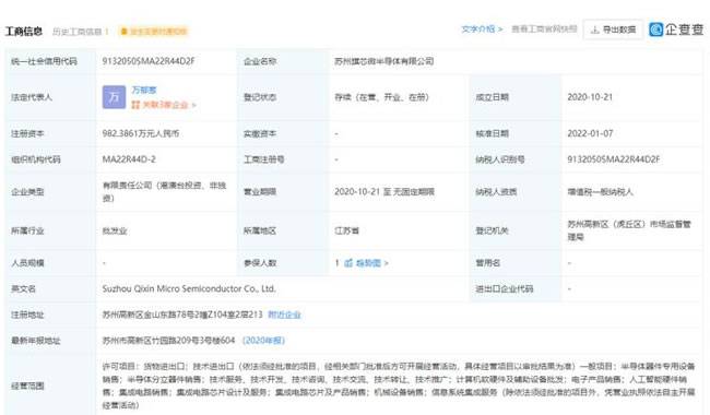 苏州旗芯微半导体有限公司经营范围比较广泛,含半导体器件专用设备销售;电子产品销售;集成电路芯片设计及服务;集成电路销售等。值得一提的是,旗芯微主要从事汽车高端控制器芯片的研发和销售,这无疑与小米的造车事业非常契合。