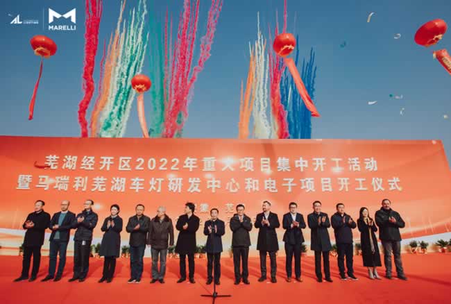 1月18日,芜湖经开区2022年重大项目集中开工活动暨马瑞利芜湖车灯研发中心和电子项目开工仪式,在马瑞利芜湖车灯电子项目开工现场圆满举行。芜湖市政府领导,马瑞利集团全球执行副总裁、中国区总裁樊坚强、马瑞利车灯与感知事业部亚太区总裁Hommel Aymeric、马瑞利车灯与感知事业部中国区总经理曹子越出席了此次活动。芜湖经开区管委会主任曹小明和马瑞利集团全球执行副总裁、中国区总裁樊坚强先生发表了现场致辞。
