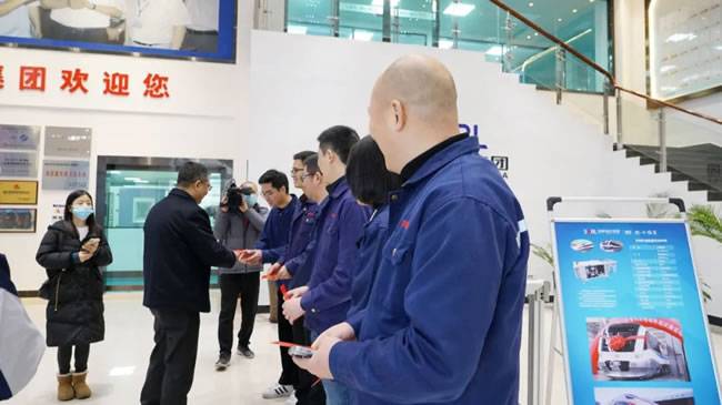 “这位是我们的副总兼总工李传武,这位是‘浙江杰出工匠’王鲜艳……”CEO余锦瑞向秦肖市长一一介绍人才代表,秦肖市长亲切地与他们一一握手。