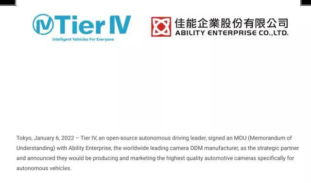 巧合的是,佳能企业(Ability Enterprise)的业务与日本相机巨头佳能颇有重叠之处,该公司专门从事相机的代工制造,从2018年开始计划进军汽车市场,产品涵盖车载相机、监控相机等。至于开源自动驾驶公司Tier IV,其成立于2015年12月,位于日本爱知县名古屋市。