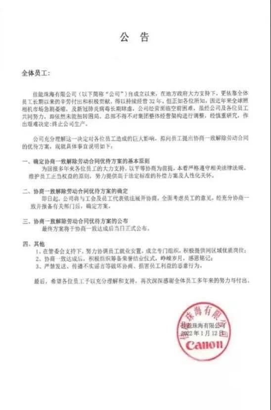 佳能在新领域的探索,某种程度上也是因为其主营业务不乐观。2018年该公司营业利润为3430亿日元,2019年剧降49%至1747亿日元,2020年再度下滑37%降至1105亿日元。此外,佳能珠海有限公司的一纸公告日前掀起轩然大波,这家千人大厂由于全球相机市场急剧萎缩,叠加疫情影响,后来宣布终止生产。