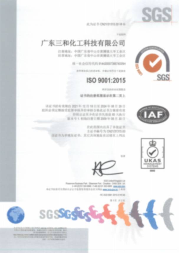 三和精化集团自2002年创立伊始,一直重视产品质量及社会可持续发展,以保障员工生命健康安全为集团第一要事。这次通过ISO三体系认证,对于三和精化集团在质量管理、环境管理及职业健康等诸多方面树立了管理准绳:有利于集团保证产品质量,降低企业成本、改善劳动条件,减少企业损失,调动员工积极性,助力集团进一步提升品牌形象,塑造世界级的强势品牌。
